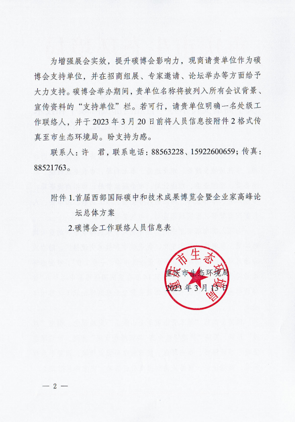 邀请国家部委领导、市政府领导、行业主管部门、两院院士及国内外专家学者、西部省区市代表、国际机构及行业协会代表、重点企业代表,以创意启动形式,为第二届西部国际碳中和技术成果博览会作盛大开幕。......